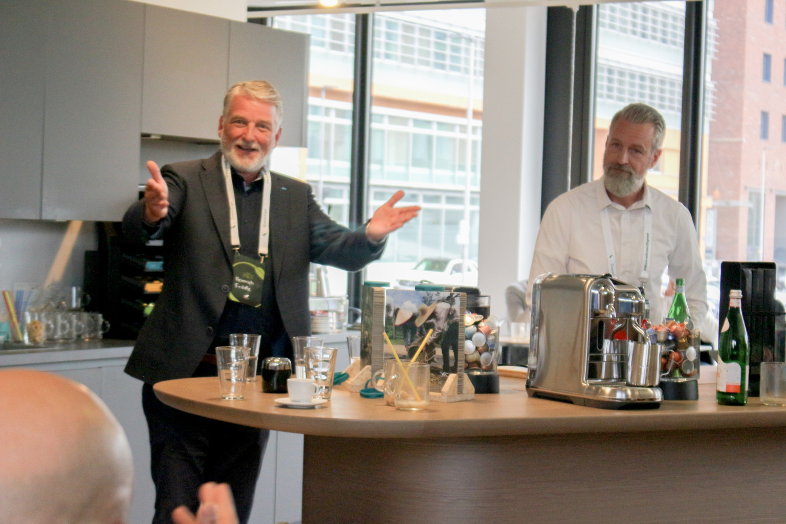 Den Auftakt bildete ein stilvolles Get-together in der Lounge von Nestlé Nespresso SA. Bei einem köstlichen Kaffee-Cocktail lauschten die Teilnehmenden einem spannenden Panel zum Thema „Wie wird Nachhaltigkeit sichtbar?“. Anis Hachem von Nespresso moderierte das Gespräch mit Ramzi Ben Said (COO HATO Düsseldorf) und Marco Lescher (Nespresso – Innovative Leader in Supply Chain & Customer Experience).